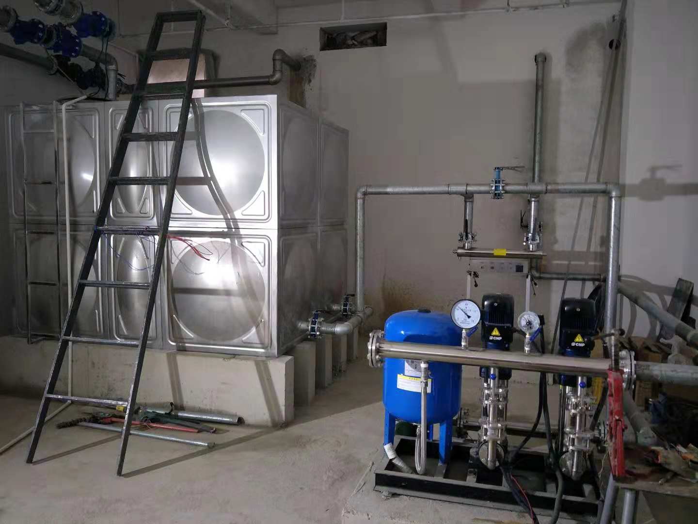河北唐山達(dá)意科技定購恒壓供水設(shè)備+不銹鋼水箱+紫外線消毒器